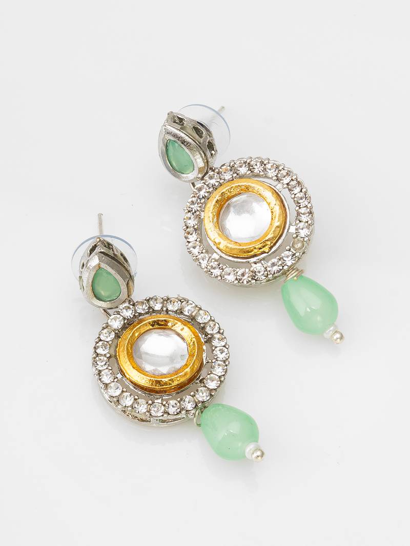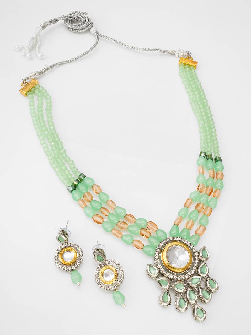 Green color handmade kundan moti mala jewellery set with pair of earrings