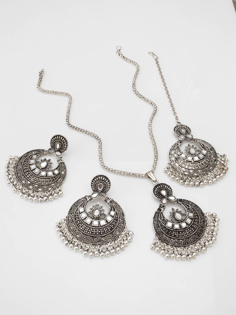 | Product Name | Latest Trendy Silver Plated Oxidised Long Chained Jewellery Set | |