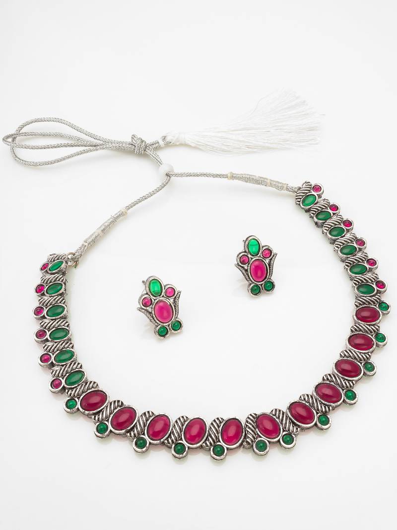 | Product Name | Pink And Green Color Stone Studded Necklace Set With Par Of Matching Earrings | |
