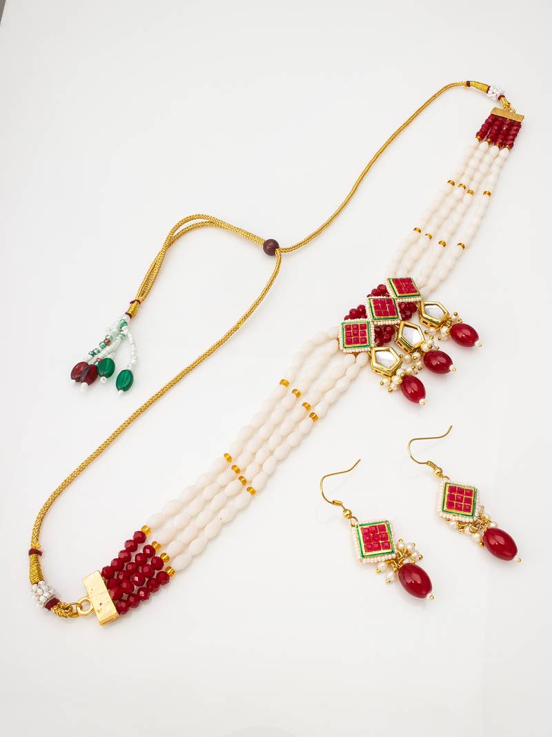 | Product Name | White And Red Color Handmade Kundan Moti Mala Jewellery Set With Pair Of Earrings | |