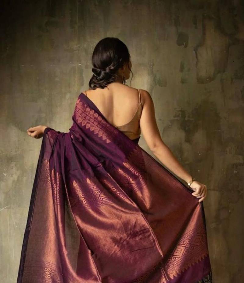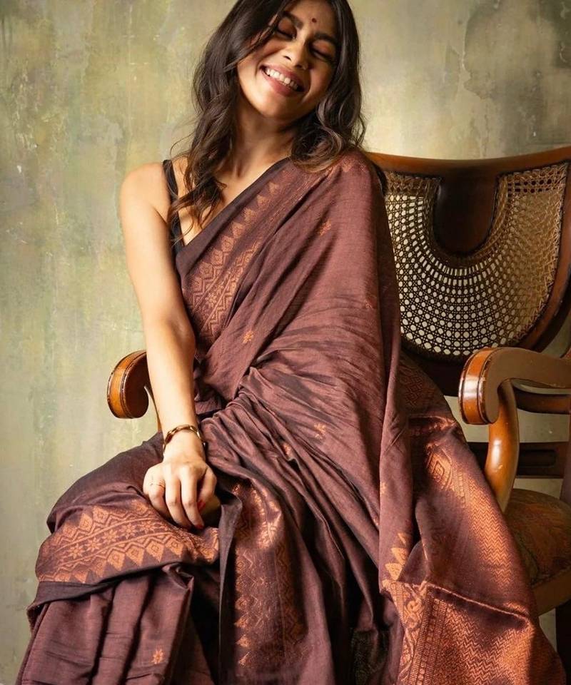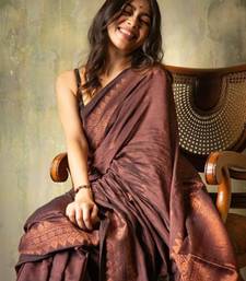 Brown soft silk blend banarasi jacuard work designer saree with blouse