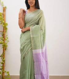 Green soft linen slub jacuard work designer saree with blouse
