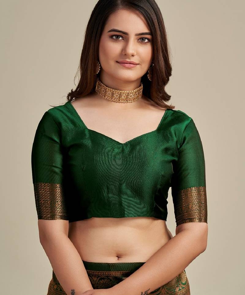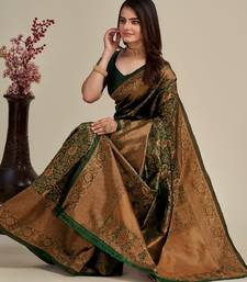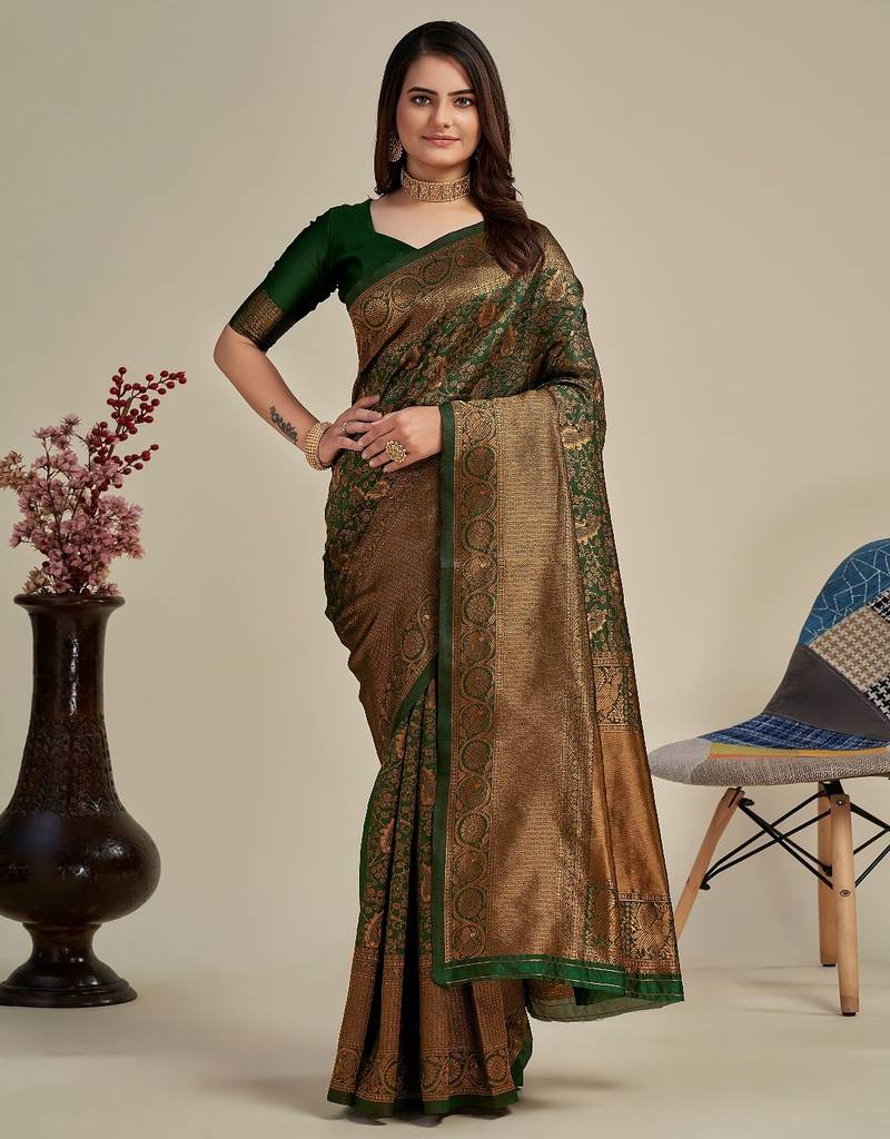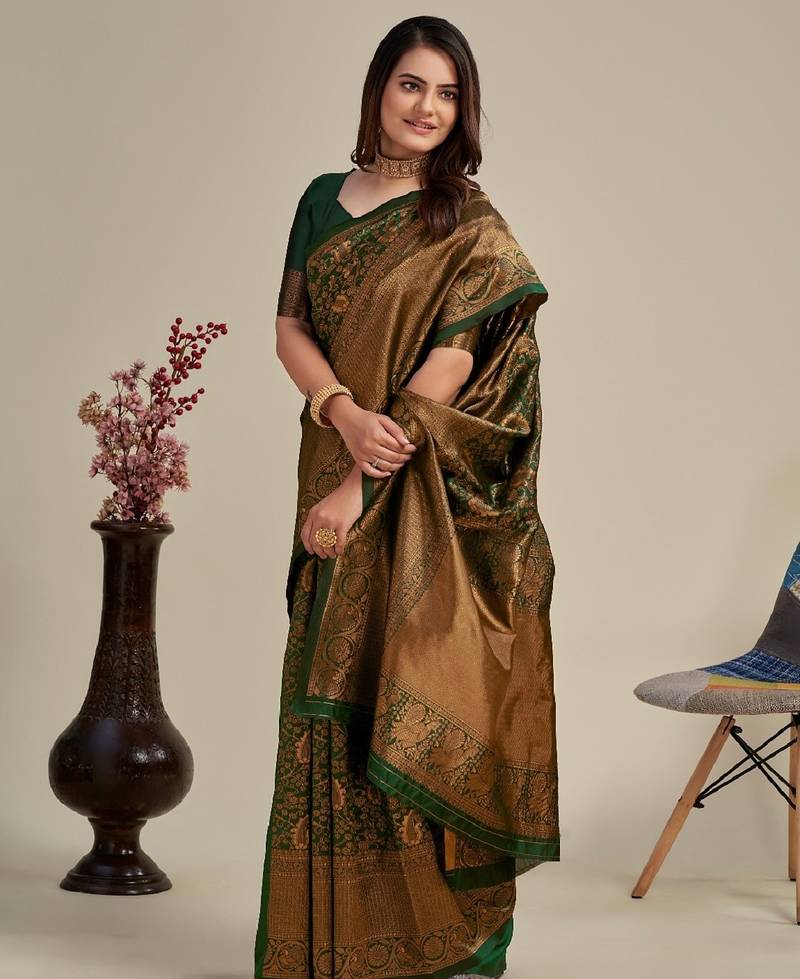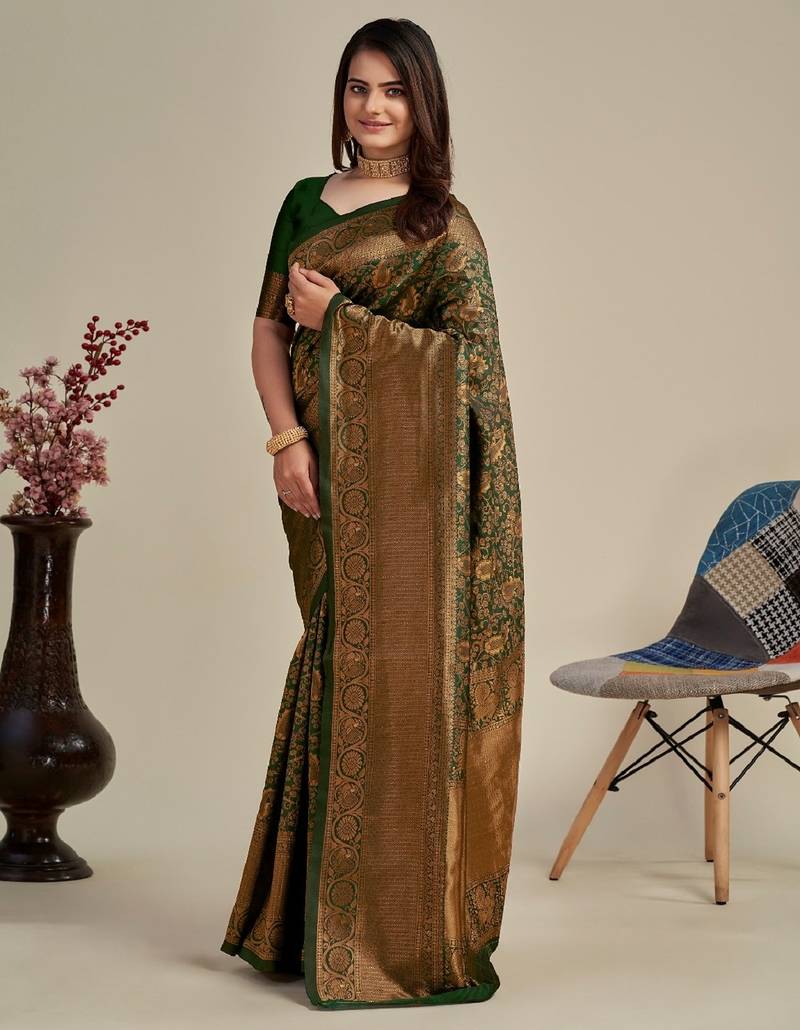 Green soft silk blend banarasi jacuard work designer party wear saree with unstitched blouse piece