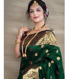 Green soft silk blend banarasi jacuard work designer saree with blouse