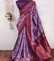 Lavender wine soft silk blend banarasi jacuard work designer party wear saree with unstitched blouse piece
