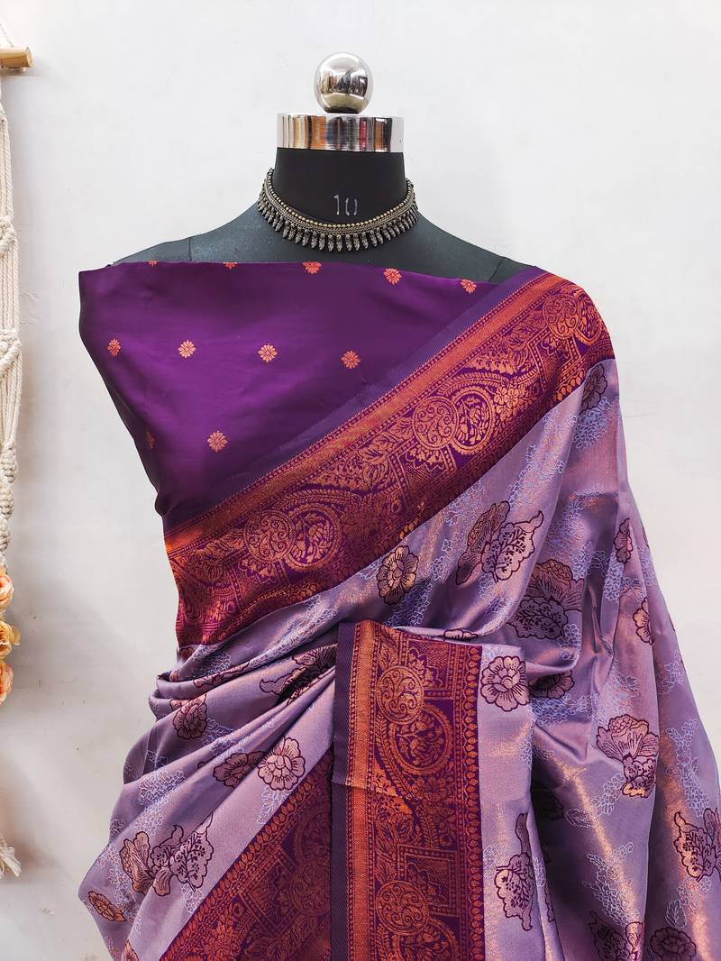 | Product Name | Lavender Wine Soft Silk Blend Banarasi Jacuard Work Designer Party Wear Saree With Unstitched Blouse Piece | |