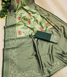 Light green soft silk blend banarasi jacuard work designer saree with blouse