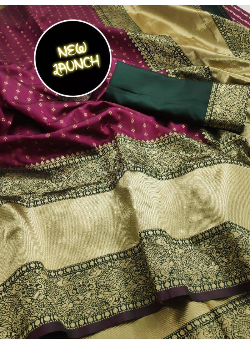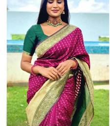 Magenta soft silk blend banarasi jacuard work designer saree with blouse