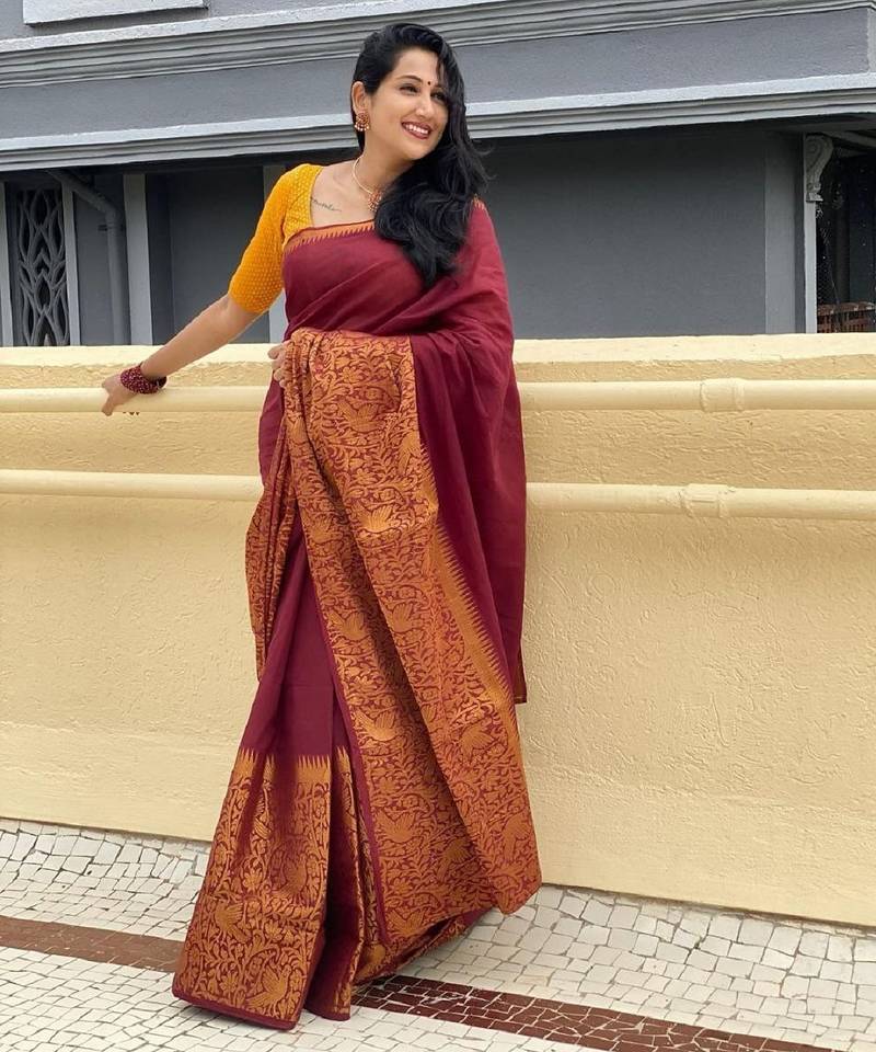 Comes With A 0.8 Meter Running Blouse Piece In Matching Wine Shade, Allowing You To Customize Your Blouse Style As Per Your Preference — From Classic Traditional Cuts To Modern Designer Patterns.