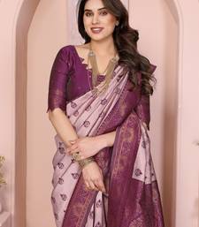 Peach wine soft art silk blend banarasi jacuard work designer party wear saree with unstitched blouse piece