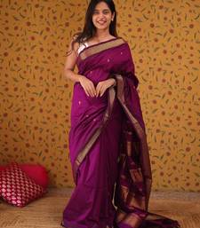 Purple soft silk blend banarasi jacuard work designer party wear saree with unstitched blouse piece
