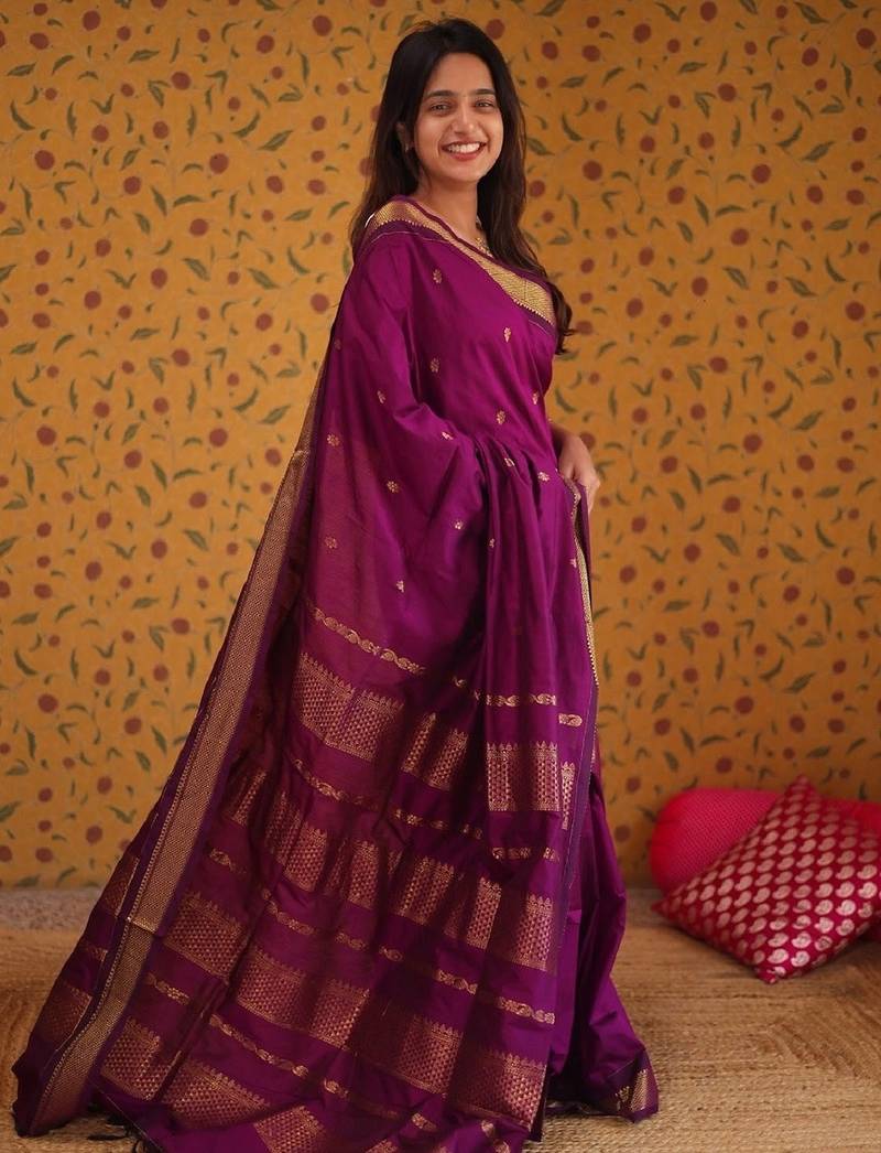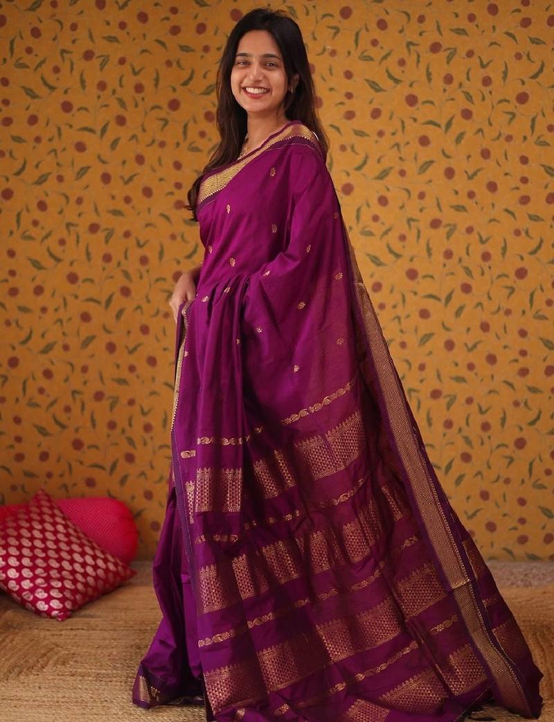 Product Name Purple Soft Silk Blend Banarasi Jacuard Work Designer Party Wear Saree With Unstitched Blouse Piece