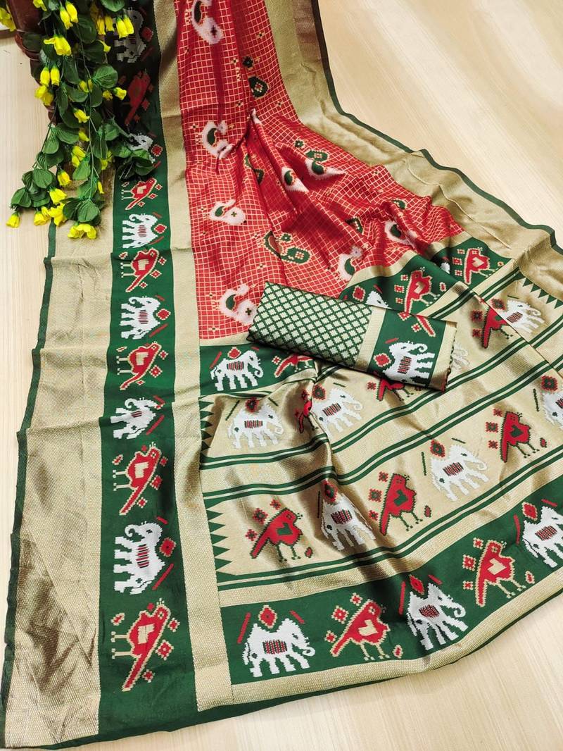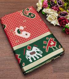 Red soft silk blend banarasi jacuard work designer saree with blouse
