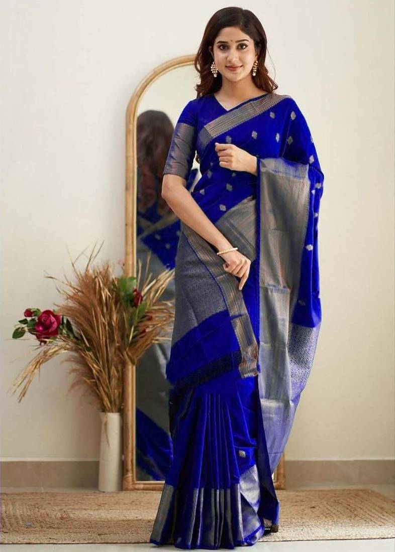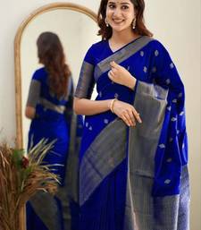 Royal blue soft silk blend banarasi jacuard work designer saree with blouse