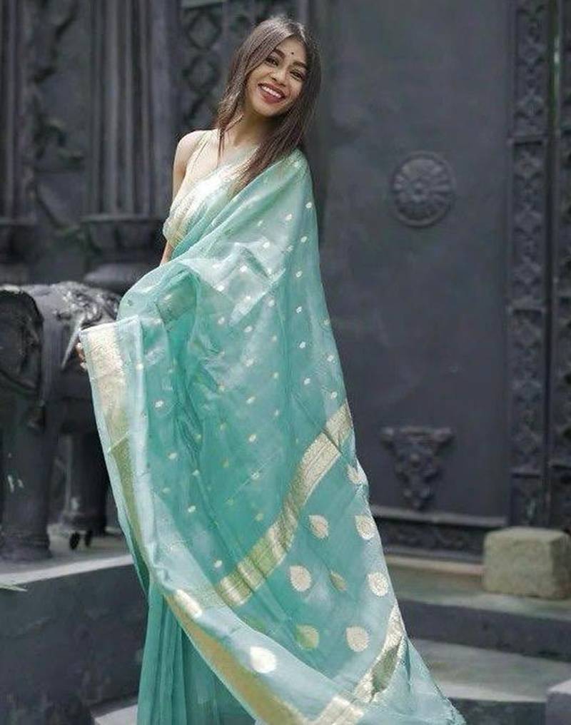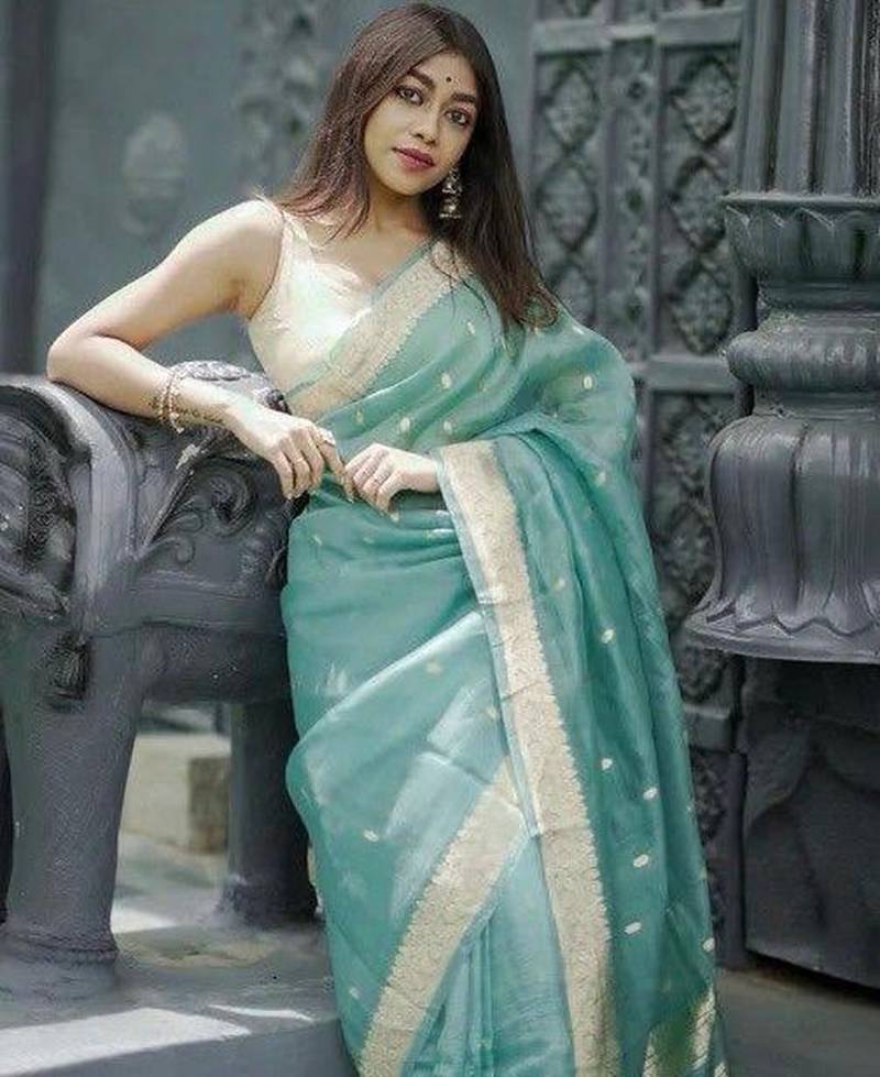 | Product Name | Sky Blue Soft Linen Slub Jacuard Work Designer Saree With Blouse | |