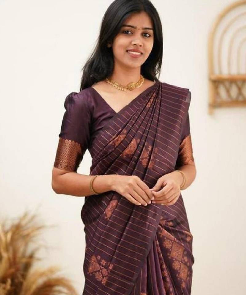 Wine soft silk blend banarasi jacuard work designer party wear saree with unstitched blouse piece