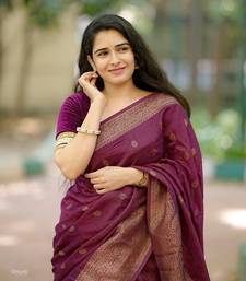 Wine soft silk blend banarasi jacuard work designer saree with blouse