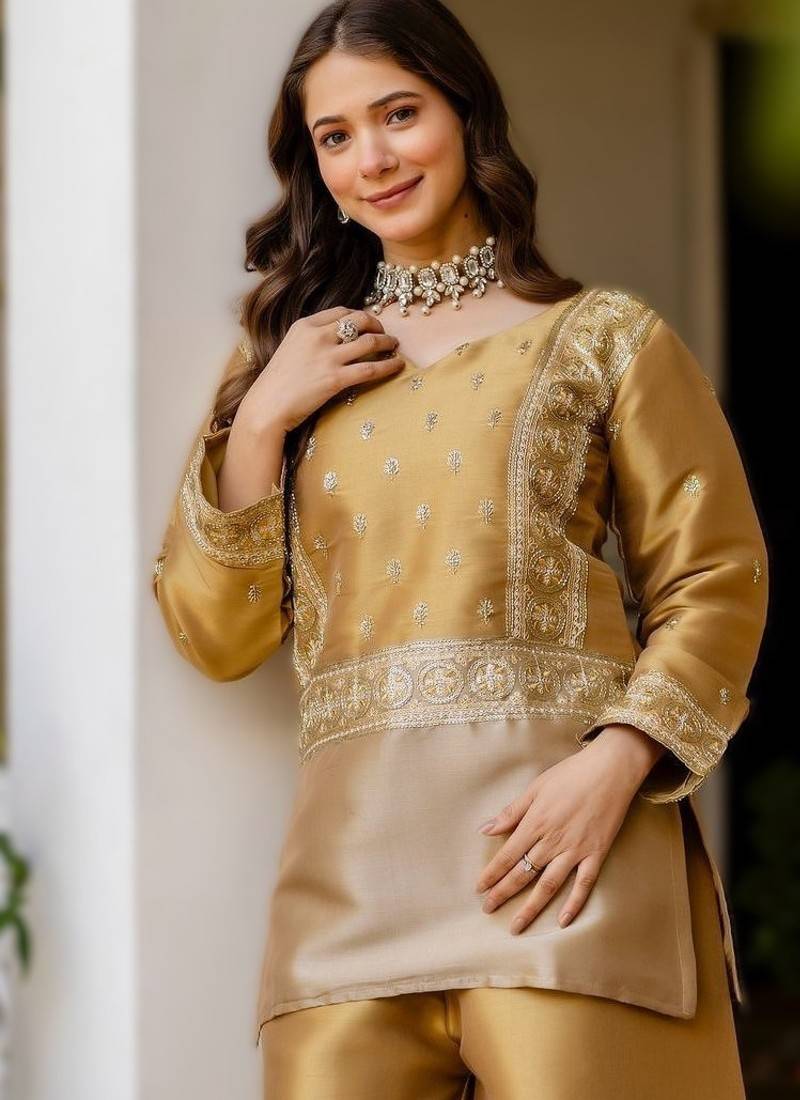 | • | Kameez | : | Color- Gold / Fabric- Viscose |