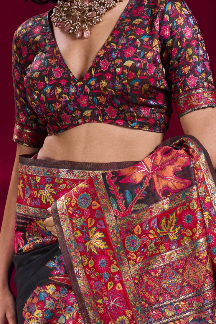 | Product Name | Black Elegant Modal Pashmina Handloom Saree With Matching Blouse | |