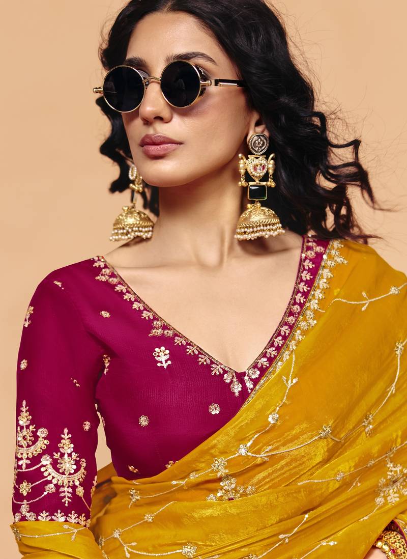 | Product Description | Elevate Your Ethnic Wardrobe With This Stunning Organza Satin Saree Featuring Intricate Sequin Heavy Embroidery Work. The Luxurious Blend Of Organza And Satin Creates A Graceful Drape, While The Shimmering Embellishments Add A Festive Charm—Perfect For Weddings, Receptions, And Special Occasions. |