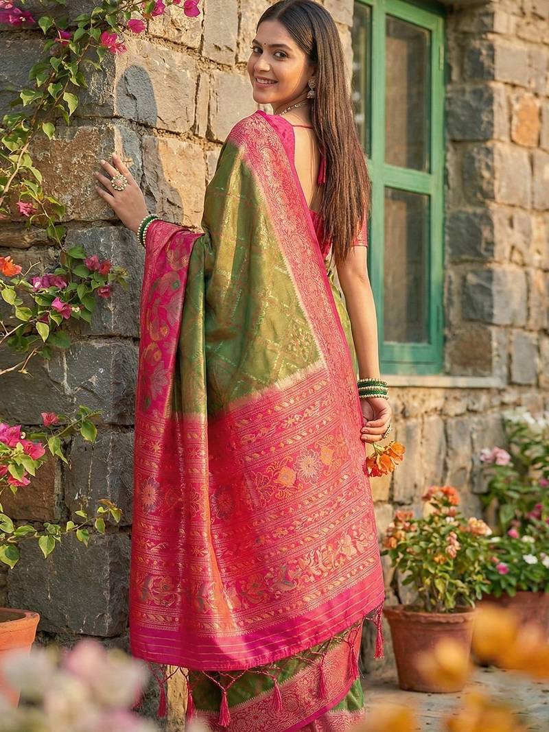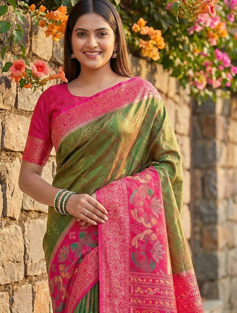 Mehendi pochampalli silk saree – soft & elegant traditional indian wear