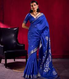 Navy blue satin linen handloom weaving silk saree with matching blouse daily & casual wear