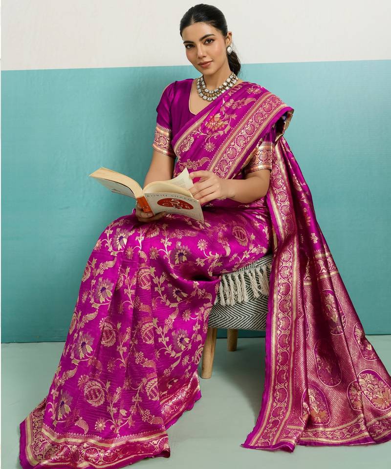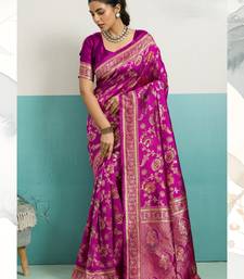 Pink soft banarasi silk saree with meenakari floral jaal weaving