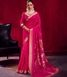 Pink satin linen handloom weaving silk saree with matching blouse daily & casual wear