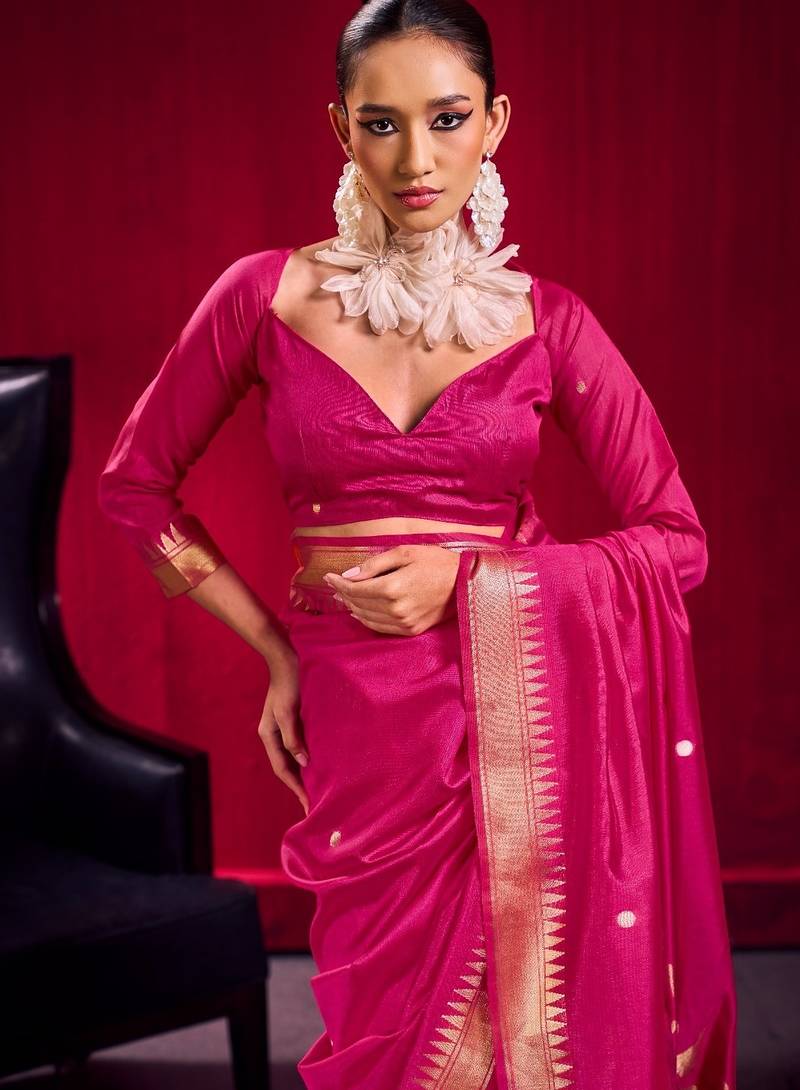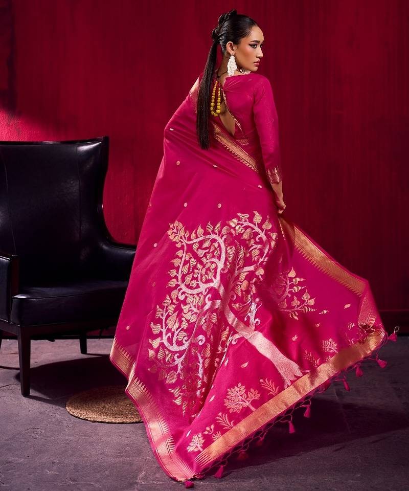 | Product Name | Pink Satin Linen Handloom Weaving Silk Saree With Matching Blouse Daily & Casual Wear | |