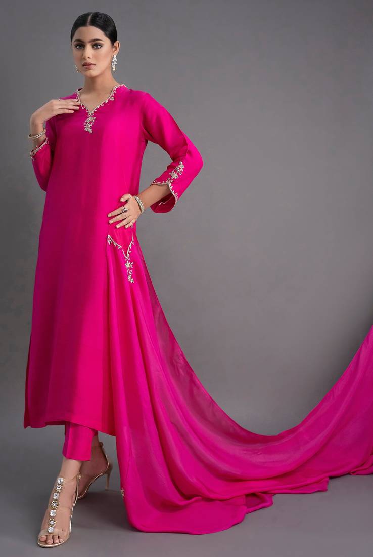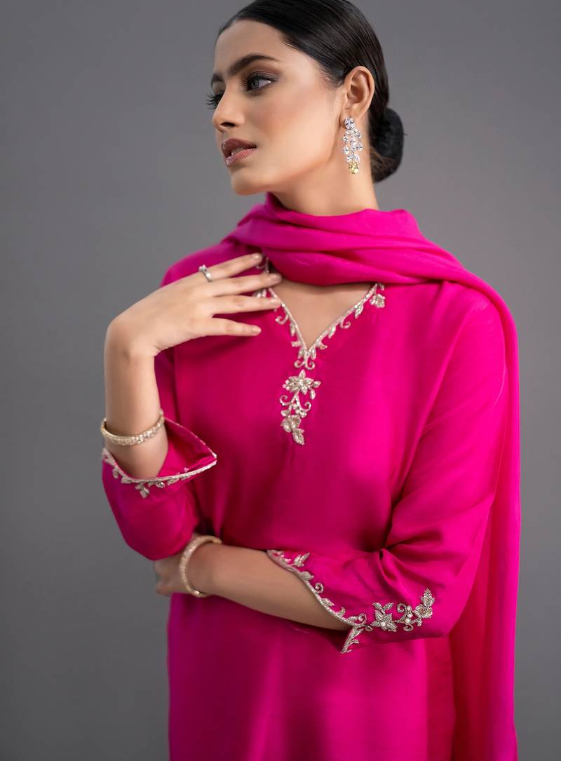 | Product Name | Pink Women Silk Blend Embroidered Kurti Pant With Najmeen Embroidered Dupatta Set | Ethnic Wear Suit Set | |