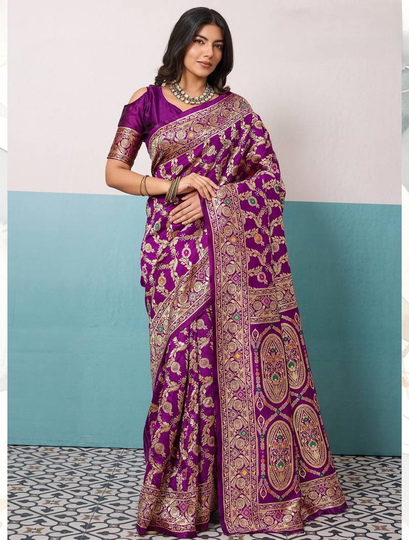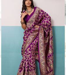 Purple soft banarasi silk saree with meenakari floral jaal weaving