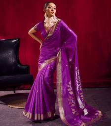Purple satin linen handloom weaving silk saree with matching blouse daily & casual wear