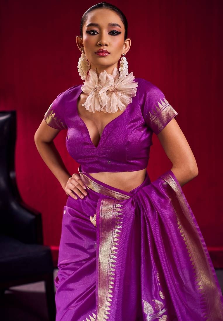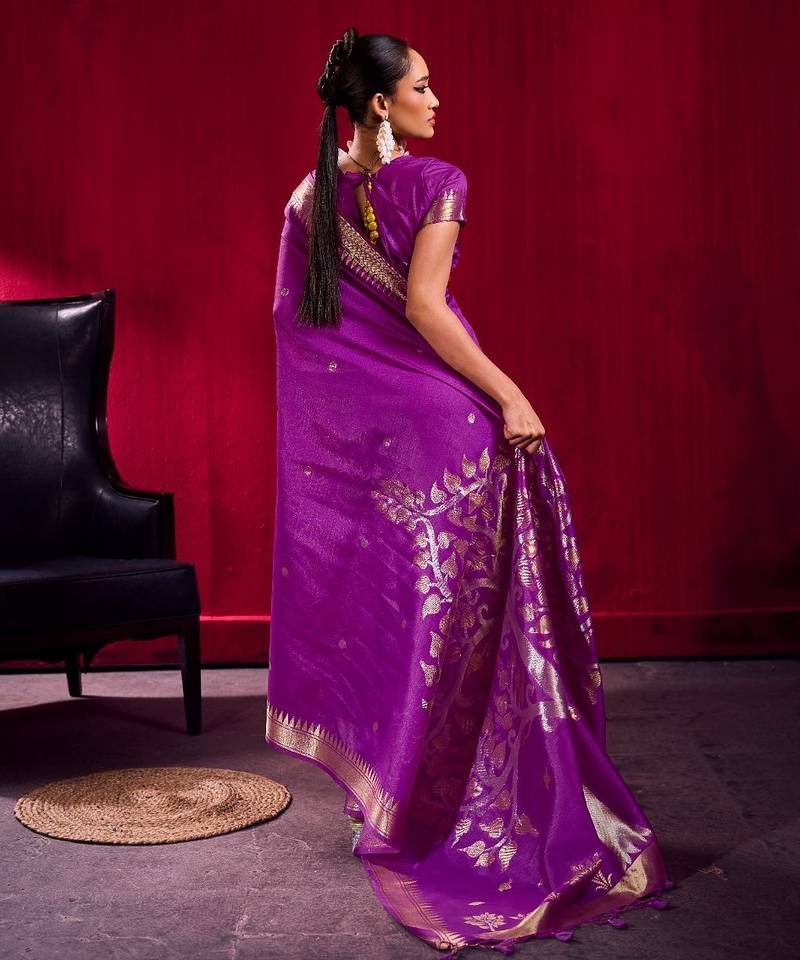 | Product Name | Purple Satin Linen Handloom Weaving Silk Saree With Matching Blouse Daily & Casual Wear | |