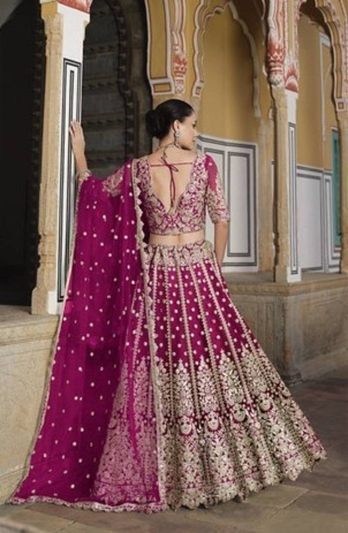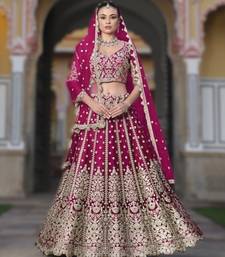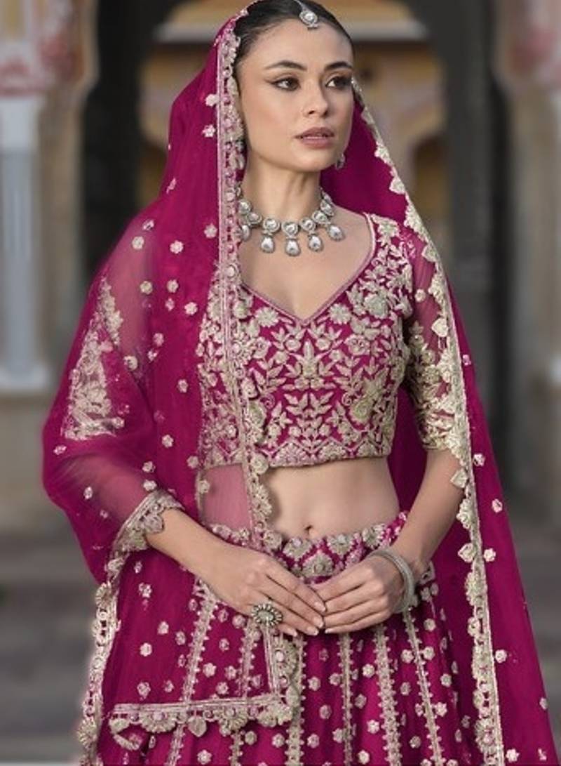 Rani pink pure butterfly net embroidered lehenga choli with dupatta sequins & diamond work bridal wedding
