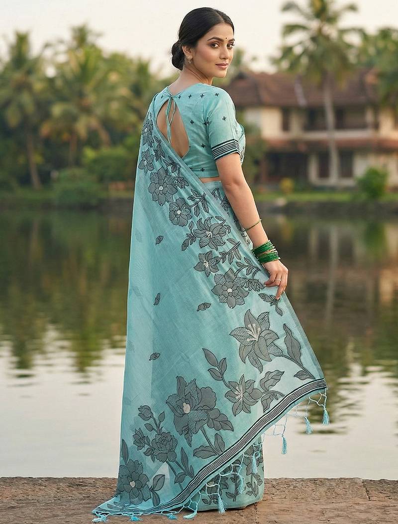 | Product Name | Sky Blue Elegant Linen Cotton Saree Collection – Soft & Comfortable Ethnic Wear | |