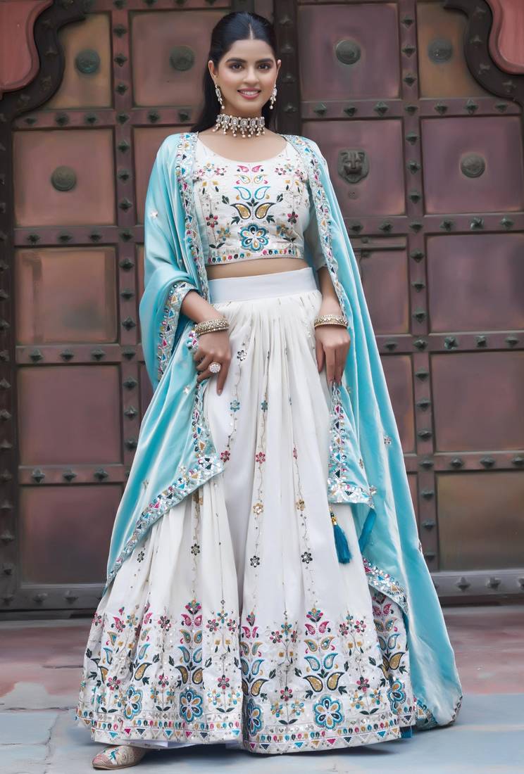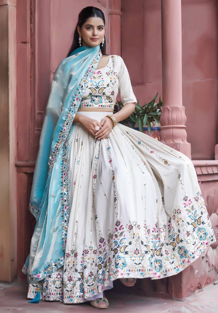 | Product Name | White Women S Pure Tissue Silk Heavy Embroidered Lehenga Choli With Sequins Work & Fendy Dupatta | |
