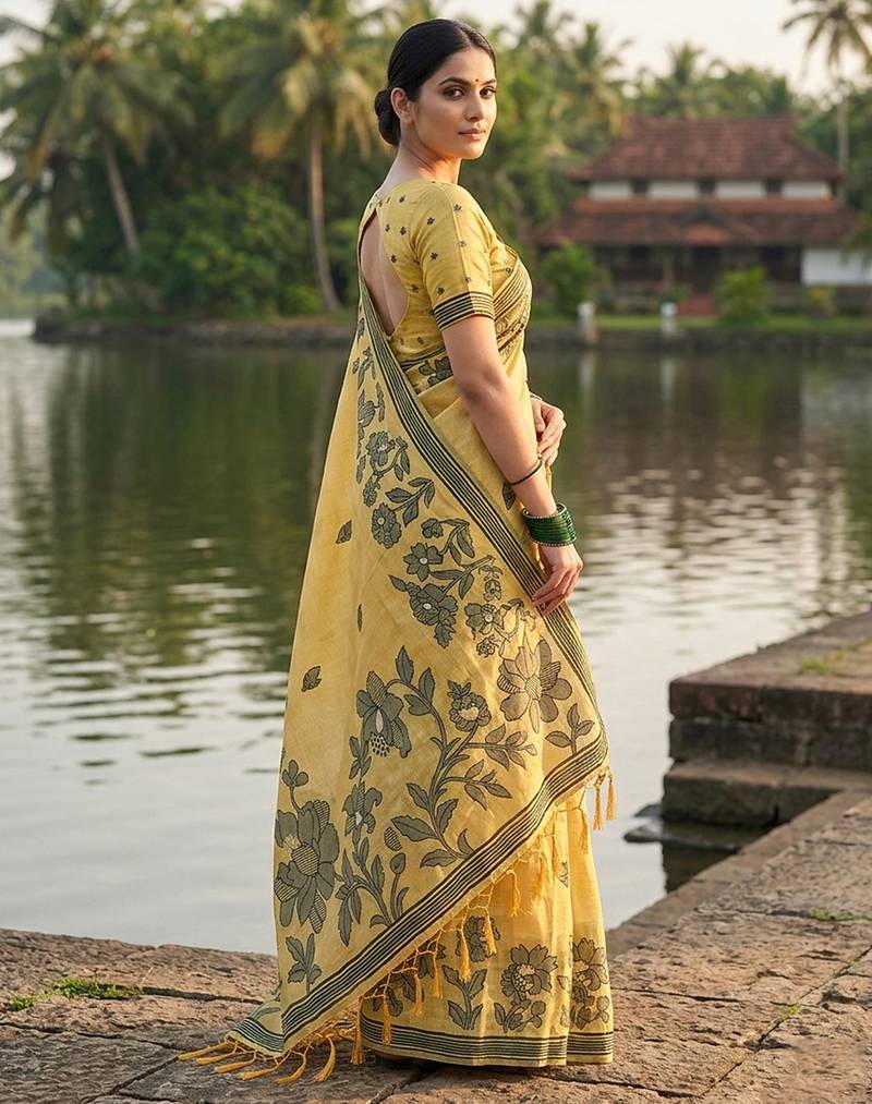 Yellow elegant linen cotton saree collection – soft & comfortable ethnic wear