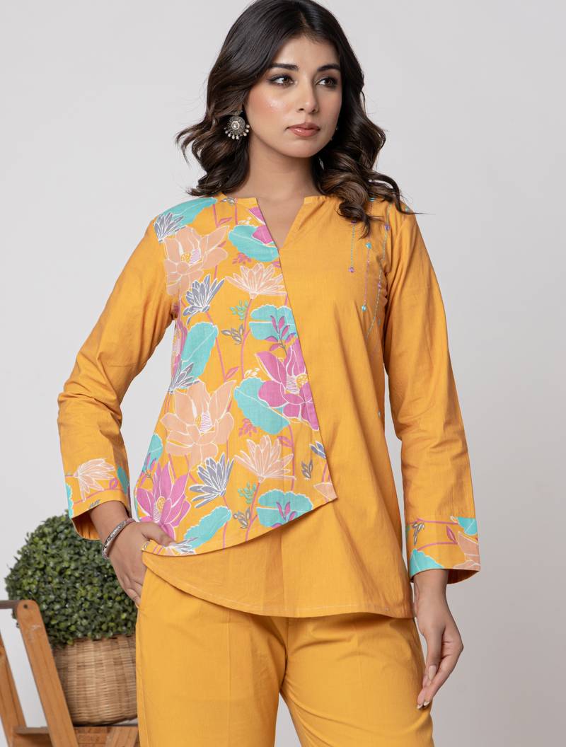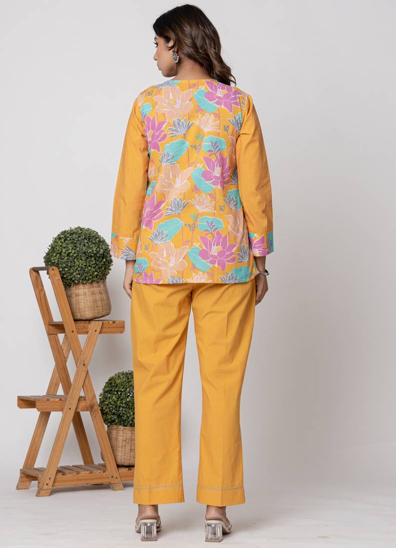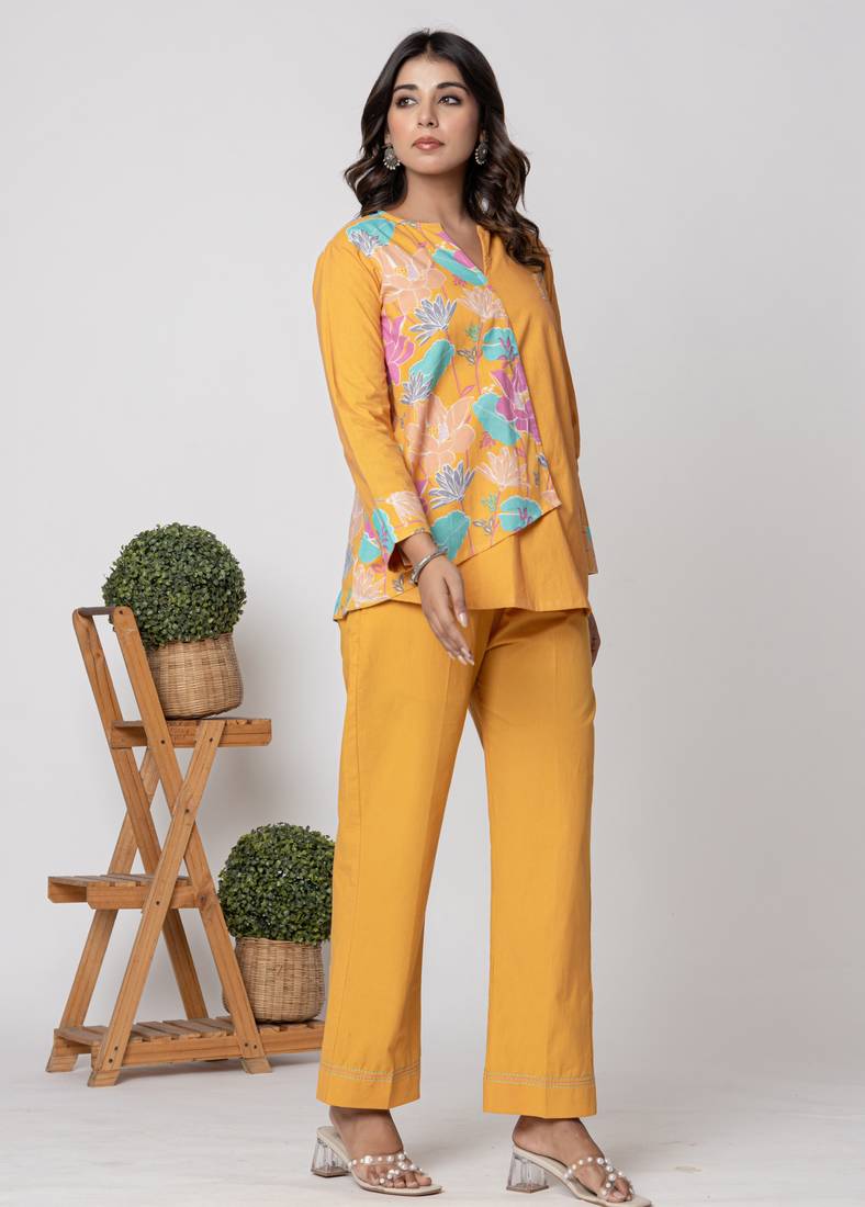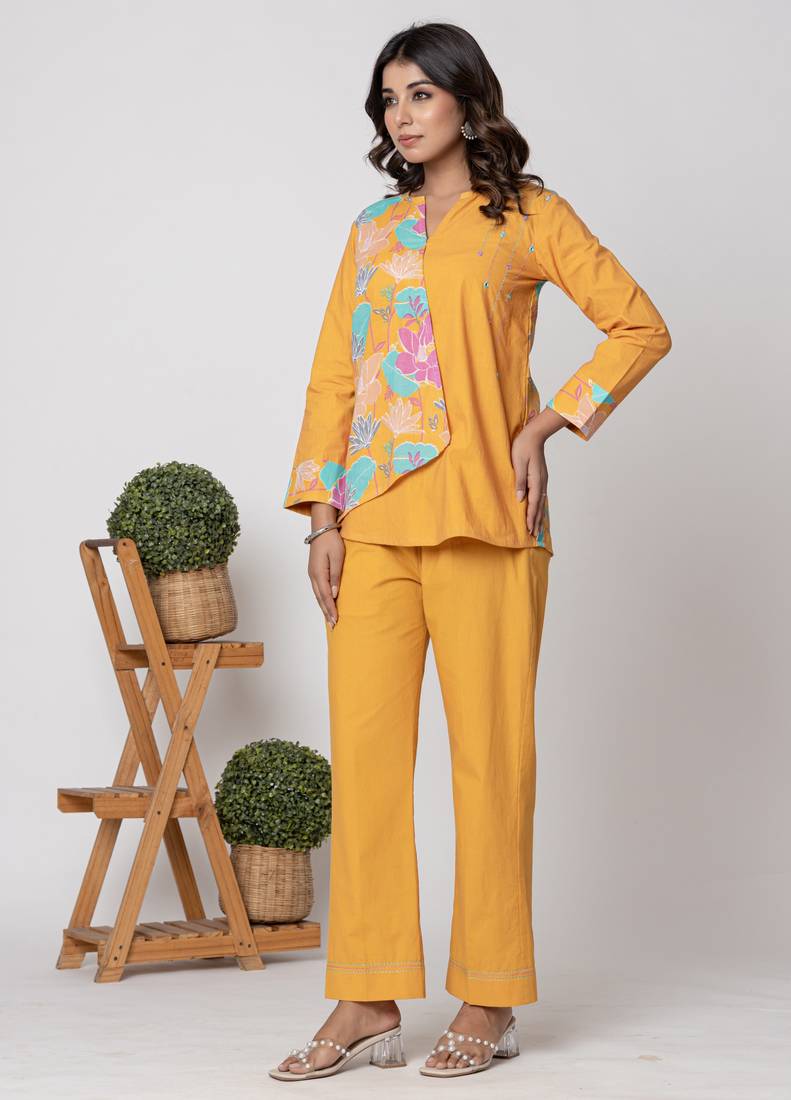 | Product Name | Mustard Half And Half Cotton Floral Coord Set | |