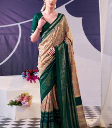 Green color Floral Print with Foil Work Tasar Silk Saree