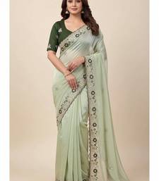 Light green embroidery work organza saree