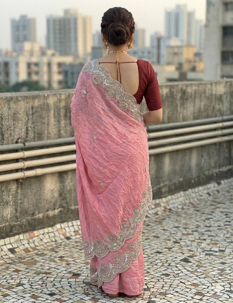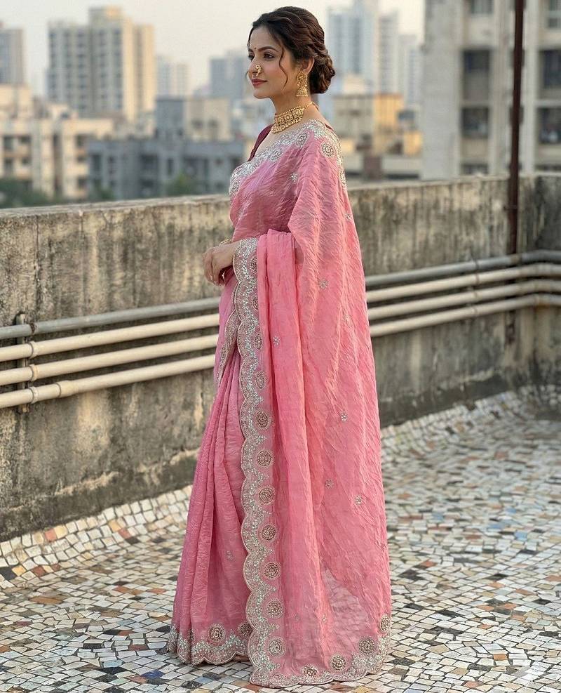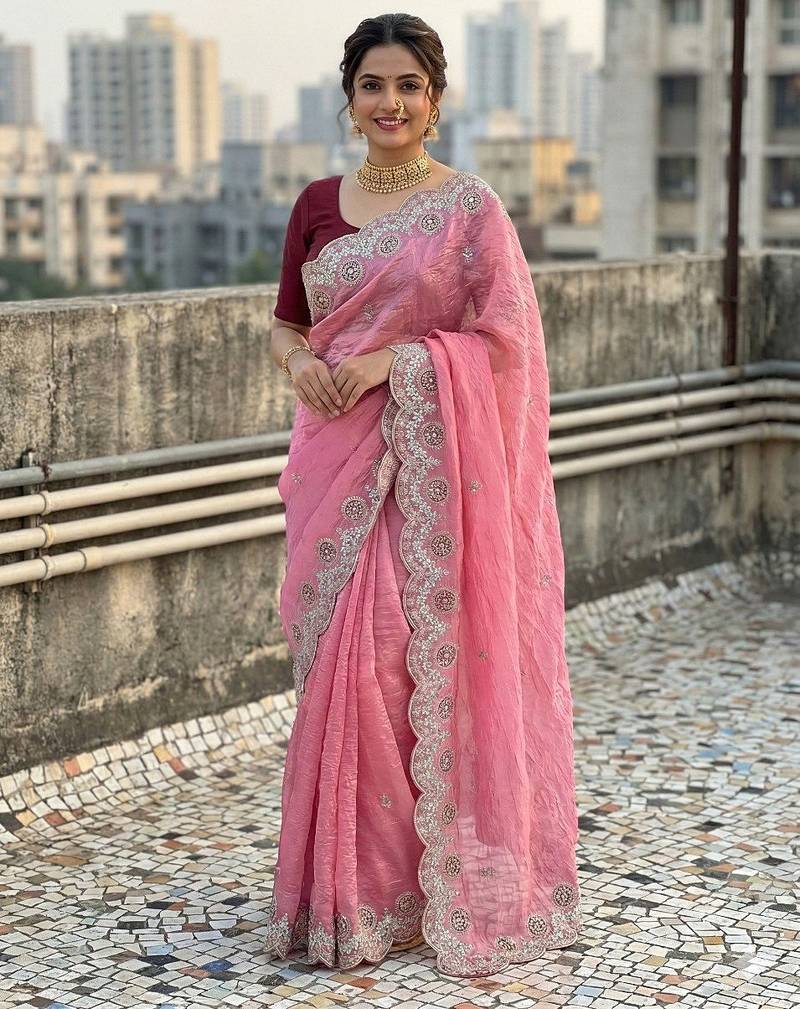 | Product Name | Pink Color Embroidery Work Gold Crush Silk Saree | |