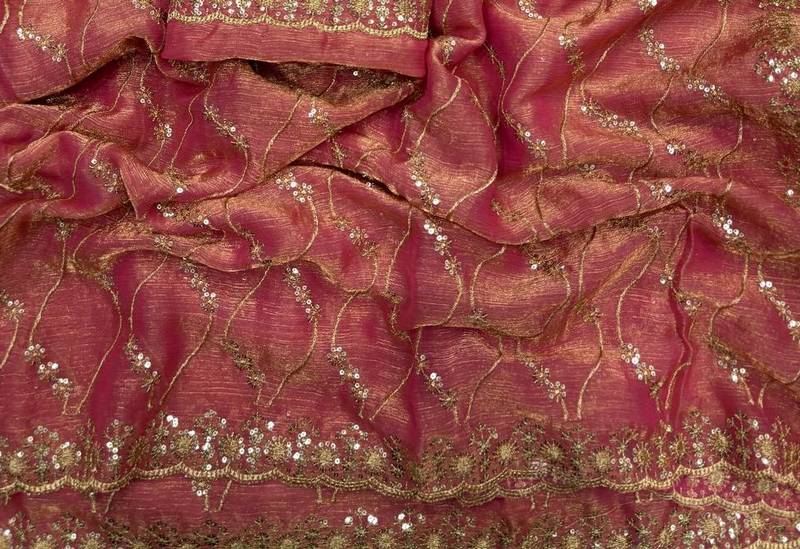 | Product Description | Sarees Fabrics.: Fandy Chiffon With Golden Zari With 3 Mm Sequence Work