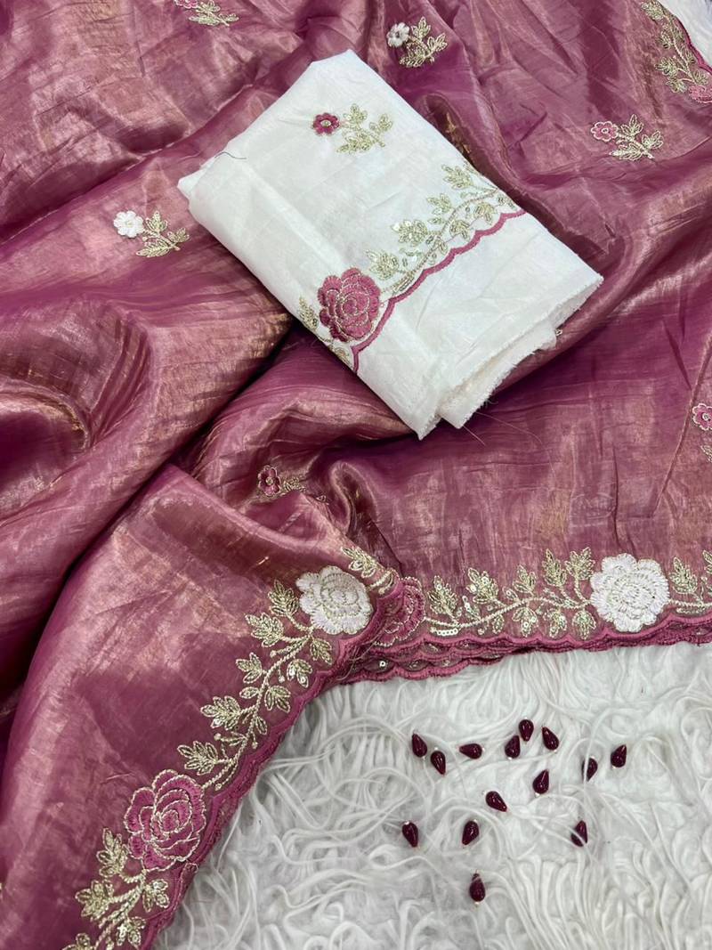 | Product Name | Pink Color Pallu Embroidery Work And Multi Thread Work With Arco Cut Work Border Silk Saree | |