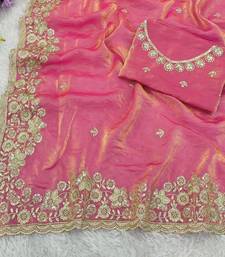 Pink color sequence embroidery work fandy satin saree