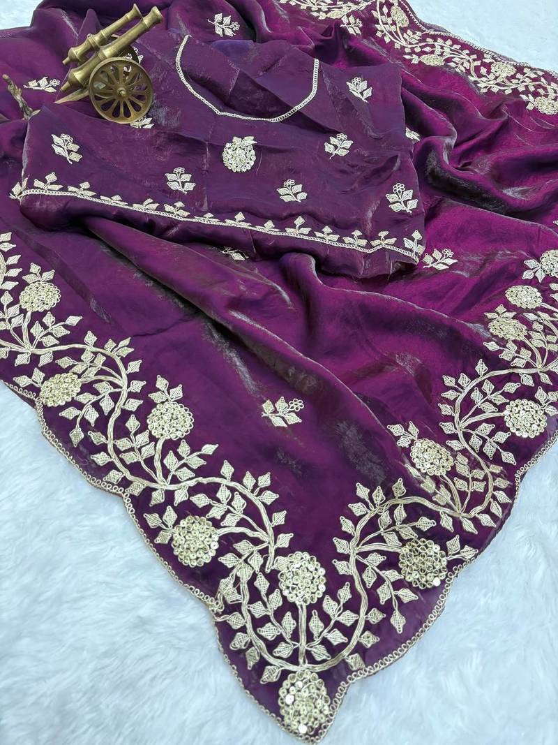 | Product Name | Purple Color Embroidery Work Fandy Satin Silk Saree | |