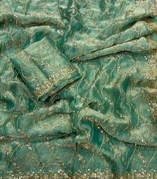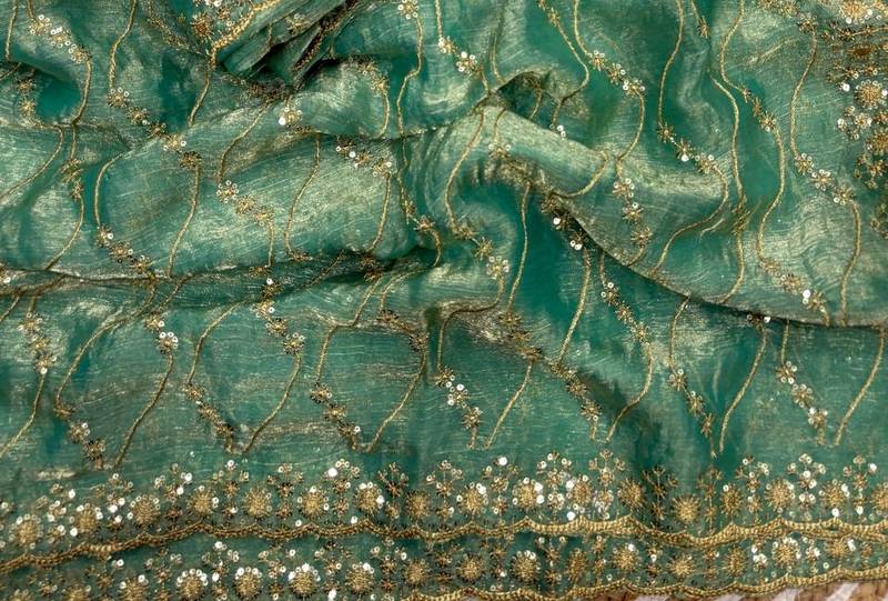 Turquoise golden zari with 3 mm sequence work chiffon saree