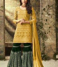 Yellow georgette semi stitched salwar suit with dupatta