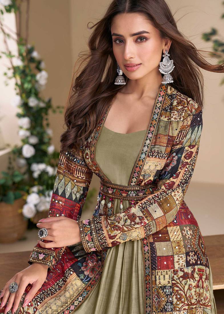 | Product Description | • Chiku Georgette Gown With Jacket Suit.