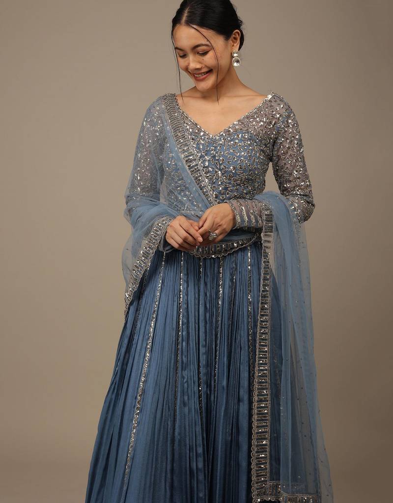 Product Name Blue Sequins Georgette Lehenga Set Choli With Dupatta With Dupatta