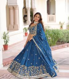 Elegant blue embroidered lehenga choli with dupatta